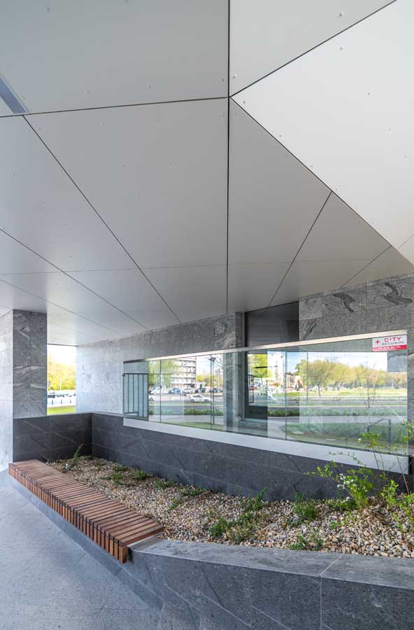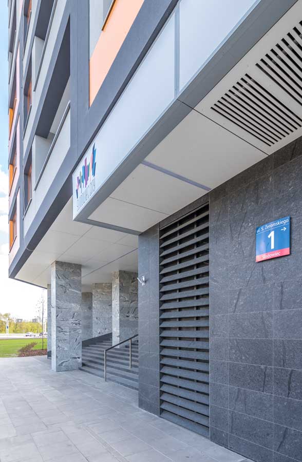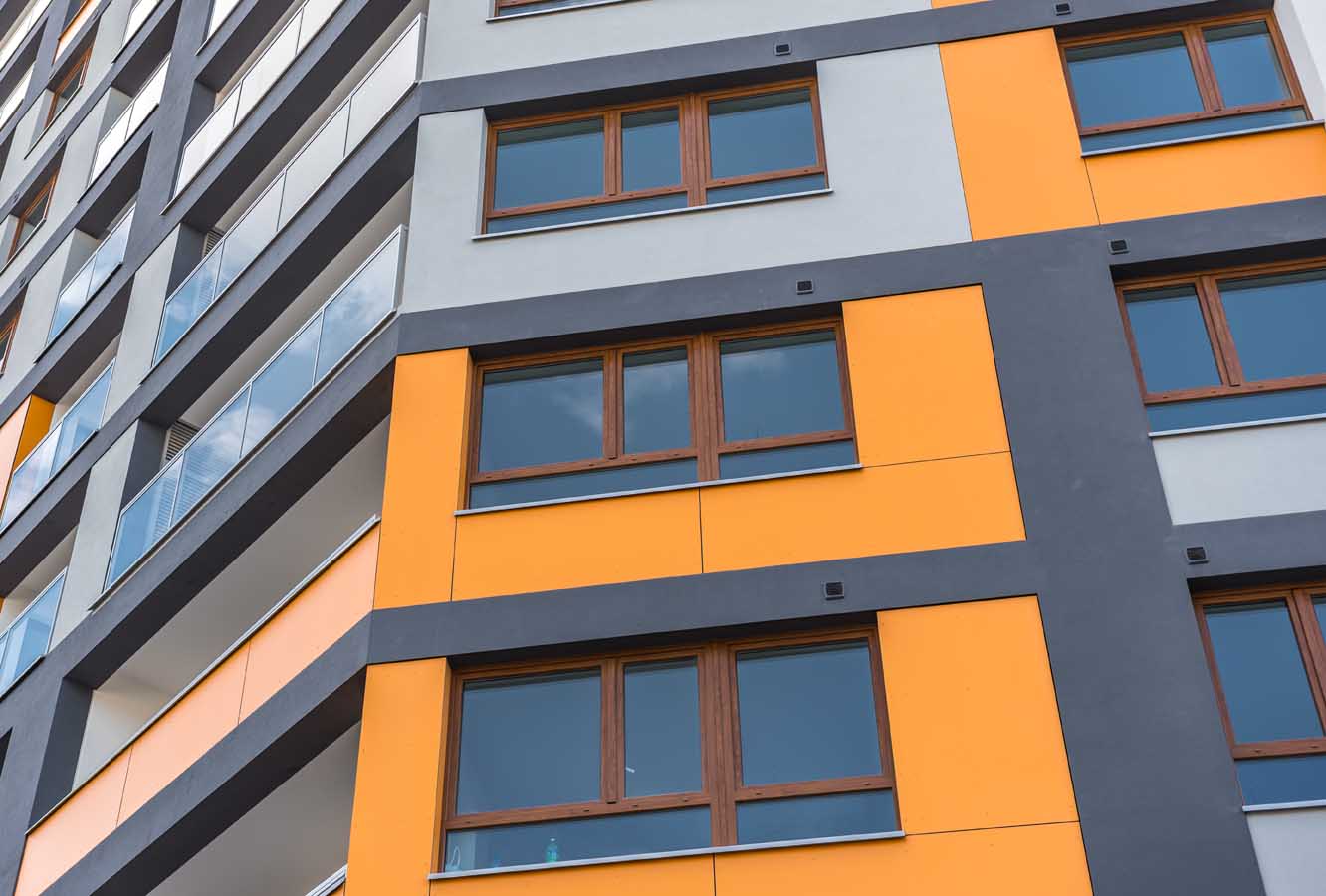 Widoczny. Płyty mocowane do konstrukcji aluminiowej za pomocą nitów w kolorze płyty